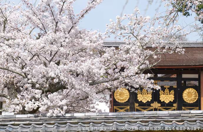 写真:三宝院 唐門(国宝)と桜(イベント時の桜開花状況と異なる場合があります。)