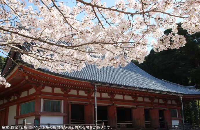 写真:金堂(国宝)と桜(イベント時の桜開花状況と異なる場合があります。)